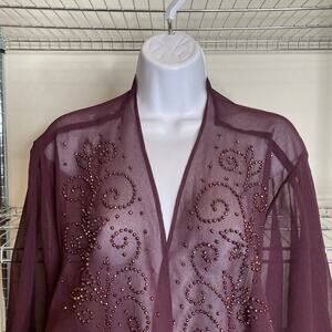 Catherines Burgundy Beaded Sheer Open Front Kimono Evening Cardigan Size 30