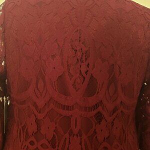 Catherine's Burgundy Lace Sheath 3/4 Bell Sleeve Lined Midi Dress, Size 0X