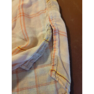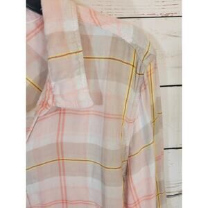 Catherines Button Down Shirt Plus Size 1X Pink Tan Plaid Roll Tab Sleeve Women's