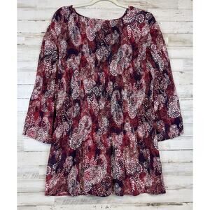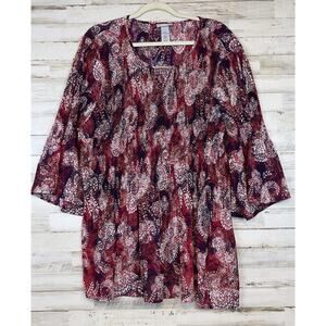 Catherines Button Down Shirt Size 3X Fairycore Whimsigoth Paisley Stretch. this blouse is made of a crinkle type fabric that won’t easily wrinkle. It is in excellent condition. See photos for details and measurements.