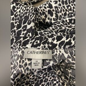 Catherine’s Button Down Top Women’s 3X Cheetah Print Black White 3/4 Sleeve