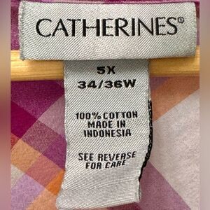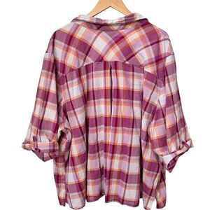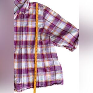 Catherines Button Front Roll Sleeve Plaid Tunic Top Blouse. 5X Plus. 34. 36.