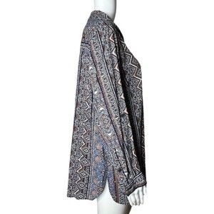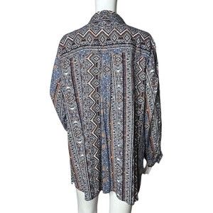 Catherines Button Up Blouse Multicolor Geometric Floral Print Long Sleeve