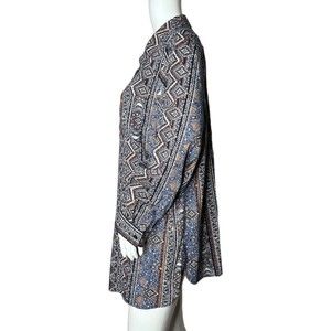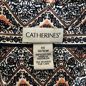 Catherines Button Up Blouse Multicolor Geometric Floral Print Long Sleeve 14/16W