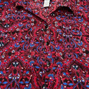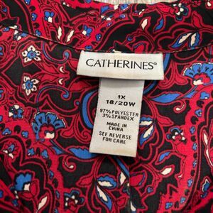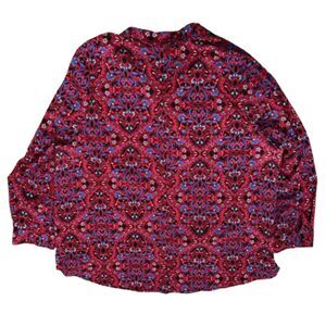 Catherines Button Up Camp Shirt Red Funky Floral Print Classic Plus Size 1X
