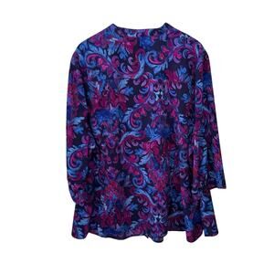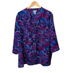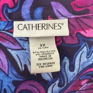 Catherines Button Up Shirt Womens 3X Top Purple Blue Floral Career Work Office