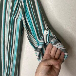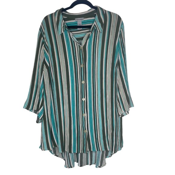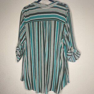 Catherines Button-Front Tunic Top Womens 2X 22/24W Striped Roll Tab Sleeves Ligh
