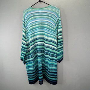 New without tags Catherines cardigan sweater in shades of teal, seafoam and blue stripes. Lightweight, loose, longer length. Size 5X.