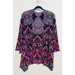 Catherines Cardigan Womens 3X Paisley Drapey Open Front Boho Peasant Hippie
