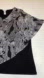 Sleek black blouse by Catherines. Perfect for any occasion. Flowey poncho like piece over blank tank top creates flutter sleeves. Content is 95% polyester & 5% Spandex black tank top. Woven poncho is 100% Polyester. Measurements flat are approximately 27” pit to pit & 31” long. In excellent preowned condition with NO spots or damage.