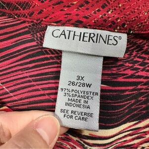 Catherines Collared Button-Up Top Blouse Asymmetric Artsy Boho Red Plus Size 3X