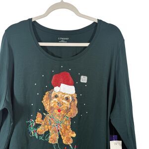 Catherines Dog Christmas Long Sleeve T-Shirt Green Holiday NWT Womens Plus 1x
