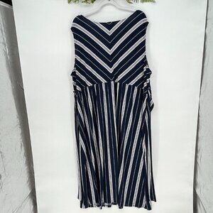 Catherines Black Label 4X Dress Belted Navy Blue White Striped Great Condition