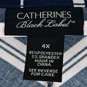 Catherines Dress Womens Size 4X Black Label Belted Navy Blue White Striped