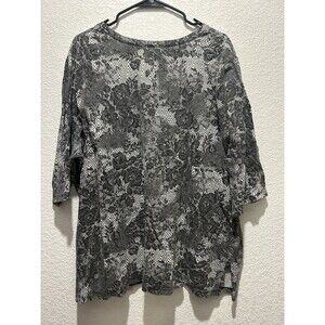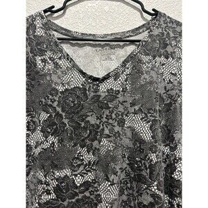 Catherines Easy Fit Tees Collection 1X 18/20W Grey Floral Short Sleeve Cotton