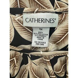 Catherines Fall Leaf Print Cutout Shift Dress Flutter Sleeves Size 1X 16 18 Plus