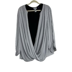 Catherines Faux Wrap Blouse w/ Inner attached Tank Size 3X White Black Stripe