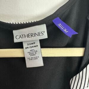 Catherines Faux Wrap Blouse w/ Inner attached Tank Size 3X Petite White Black Stripe 26/28 Career Casual