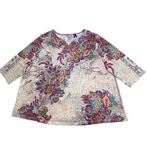 Catherines Floral Paisley Tunic Top Size 1XWP Petite 1X Beige Purple Embellished