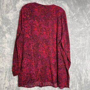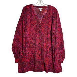 Catherines Floral Printed Button Front Tunic Womens 2X Red Pink Black Boho