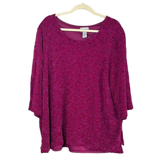 Catherines Floral Top 2X Pink Coquette Feminine Boho Western Retro 80s Workwear