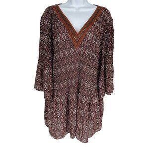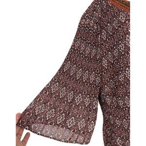 Catherines Geometric Print Embellished V-Neckline Flared Sleeves Women's Size 1X