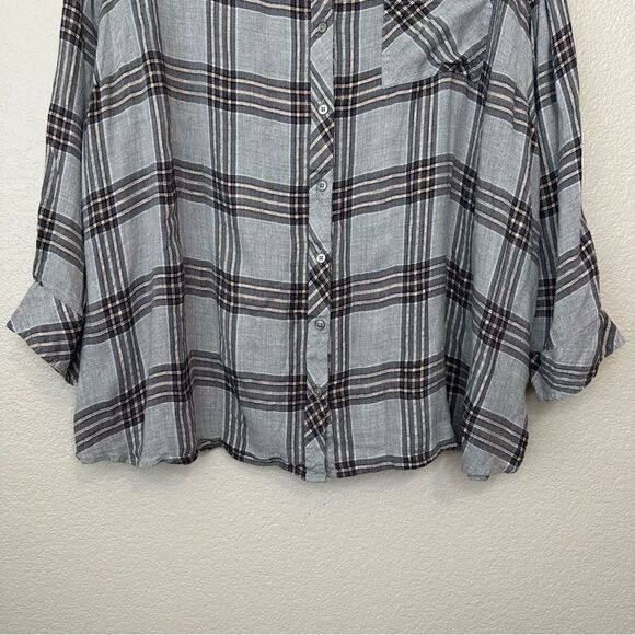 Catherines Gray Plaid Button Down Women’s Shirt, Size 3XWP