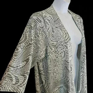 Catherine's Gray White Paisley Open Cardigan Plus Sz 1X