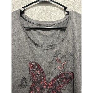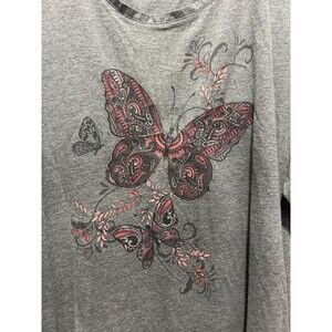 Catherines Grey Butterfly Graphic Cotton Blend Tee- Women's 1X Short Sleeve