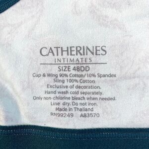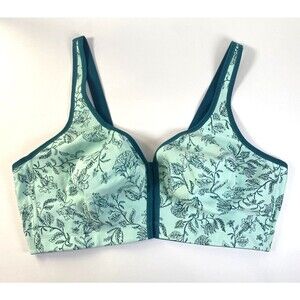 Catherines Intimates Front Close Wireless Bra Size 48DD Green Floral Inner Sling