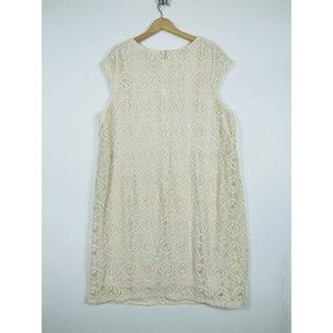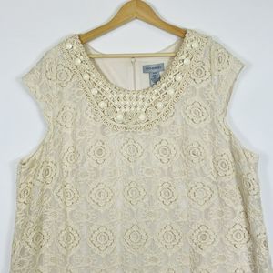 Catherines Ivory Lace Lined Beaded Collar Short Sleeve Sheath Dress Womens 2X