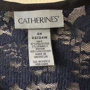 Catherines Lace Tunic Top Blouse Short Sleeve Sheer Relaxed Navy 2X or 22/24W