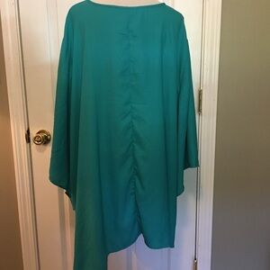 Left side is longer than the right side. Sleeves in a point. Loose, comfy, wearable anywhere. Lagonlook, office wear,run errands, luncheon. Like new.