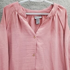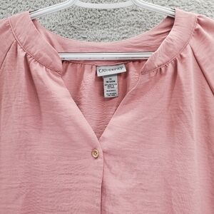 Catherines Light And Airy Y-Neck Blouse Shirt Women's Plus Size 1X Pink