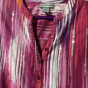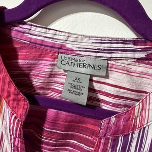 Catherines Liz & Me Button Top Size 2X 22 24W Sequin Details Roll Tab Sleeve