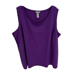 Catherines Lot Of 2 Tank Tops Size 3X Purple Black Sleeveless Pullover Women’s. Polyester spandex. scoop neck. Stretch. Bust 54. Length 31. Measurements are approximate. Very good preowned condition.