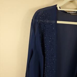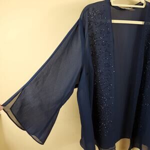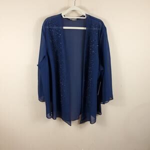 Catherines Masquerade Beaded Sheer Cardigan in Blue Size 28WP