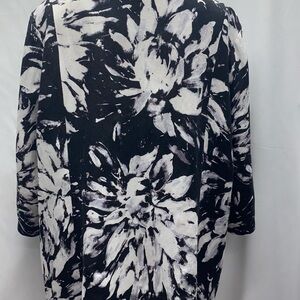 Catherines Monochrome Floral Open Jacket 2X 3/4 SL Pockets Black/White