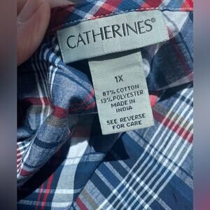Catherines NWT Country Ranch Patriotic Pleated Plaid Oversized Comfy Blouse 1X
