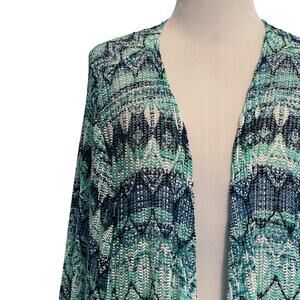 Catherines Open Cardigan Topper Womens Size 2X Teal Blue Aztec Layer Coverup