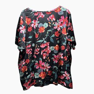 Catherines Petite Black Floral Pull Over Blouse Plus Size V Neck Flowy Comfort Size 2XWP