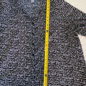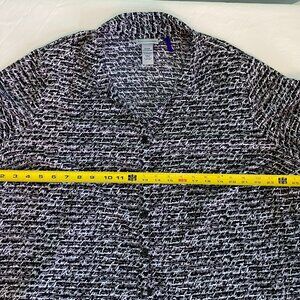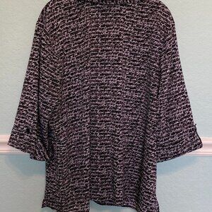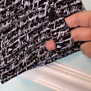 Catherines Petite Blouse 2XWP Black White Abstract Button Up Roll Tab Sleeve 2X