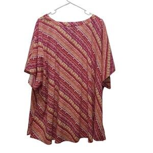Catherines Pink Orange Diagonal Stripe Popover Blouse Plus Petite 3XWP 26/28WP