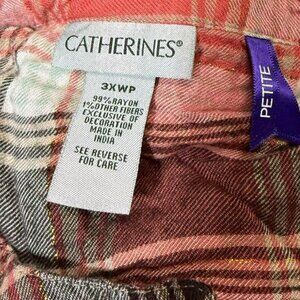 The Catherines Pink Plaid Embroidered Henley Blouse in 3XWP Petite is a stylish and versatile top perfect for casual occasions. Made from rayon & other material, this blouse features a multicolor plaid design with a gold metallic thread accent, adding a touch of elegance. The long sleeves and embroidered accents make it a chic choice for all seasons, while the brand's reputation for plus size clothing ensures a comfortable and flattering fit for women of all shapes and sizes.