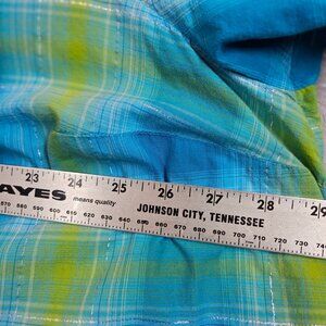 Catherines Plaid Peasant Top Womens 3X Turquoise Green silver Embroidery peasant
