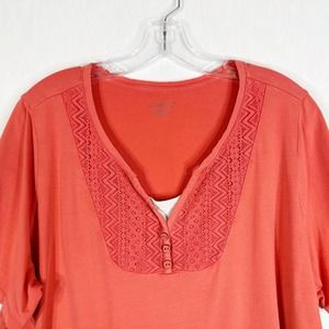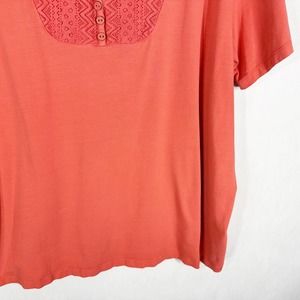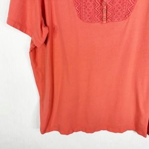 Catherines Plus Size 1X Top Peach Pink Short Sleeve Lace Tee Stretch Womens 1344