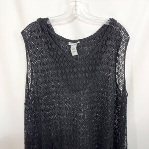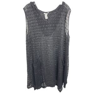 Catherines Plus Size 26W 28W Swim Cover Up 3X Black Lace Hooded Pockets 1471
