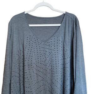 Catherines Plus Size 3X 26 28W Gray Studded Scoop Neck Stretch Tunic Top Blouse