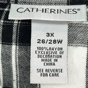 Catherines Plus Size 3X Plaid Button Down Shirt Black White Lace Trim Roll Tab S