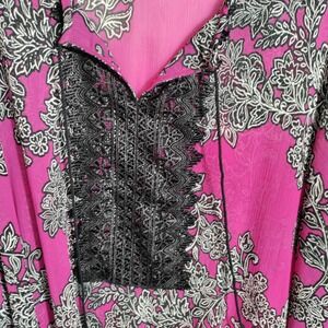 Catherines Plus Size 3X Top Bright Purple Pink with Print Deco and Lace